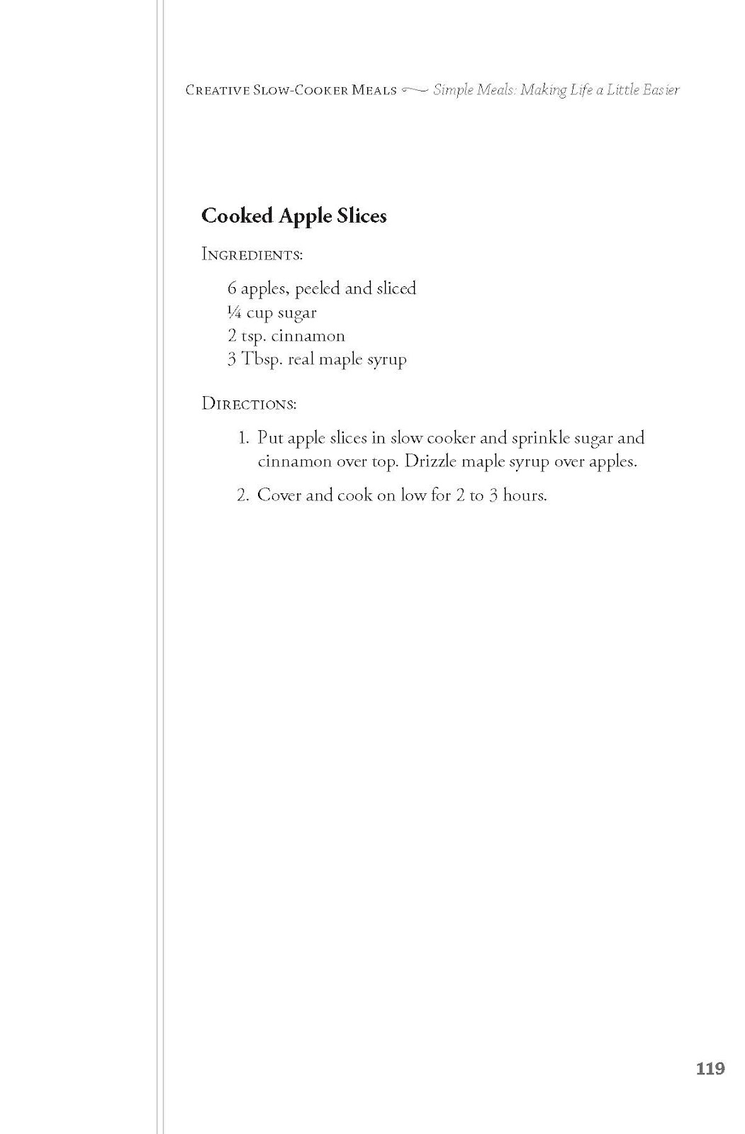 Some of the things included in this cookbook, are Breakfast recipes, recipes the use local, fresh ingredients that you might get at the Farmer’s market, Ethnic meals, Easy and fast to throw together meals, really simple meals and of course things for parties! There is also things for special diets like Vegetarian, Vegan, dairy and gluten free recipes included in this book. It is a fun slow cooker book and one that I am looking forward to trying some of the recipes!